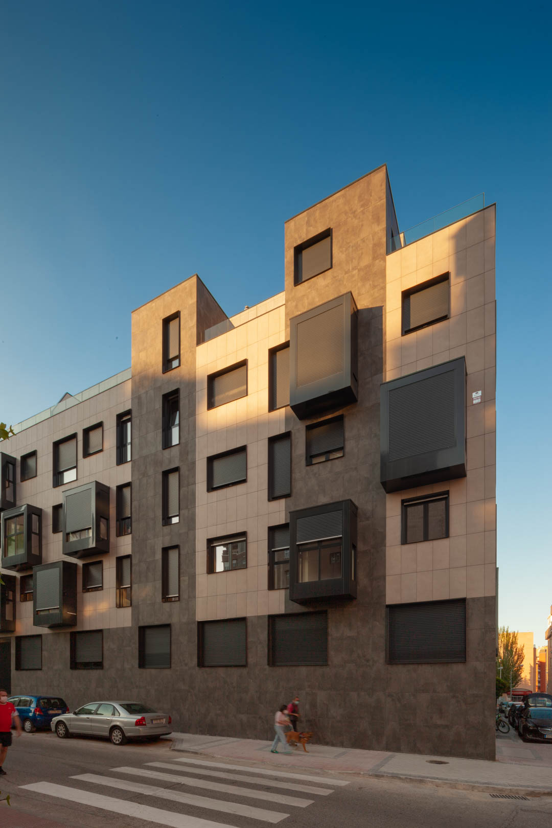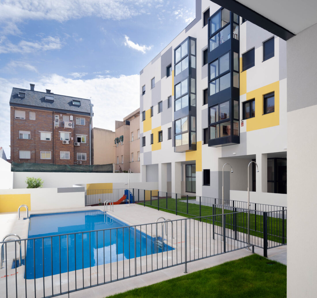 Se trata de un edificio de vivienda colectiva destinado a venta entre medianeras con fachadas a la calle y al patio de manzana compuesto por 24 unidades residenciales en las plantas de la baja a la cuarta, sótano y semisótano destinados a aparcamiento y trasteros y planta baja con gimnasio, piscina y zonas ajardinadas. Las viviendas se agrupan en dos portales, uno de cinco plantas con viviendas más grandes orientado a la casa de campo con viviendas en las que se prima la ventilación cruzada y las vistas a la vecina Casa de Campo. Y otro de tres plantas con fachada orientada hacia el Paseo de Extremadura en el que se prima la privacidad de las viviendas y una estructura flexible que permite que la viviendas puedan tener cocinas abiertas a salones o dos o tres dormitorios sin modificar la posición de las zonas húmedas de las viviendas.