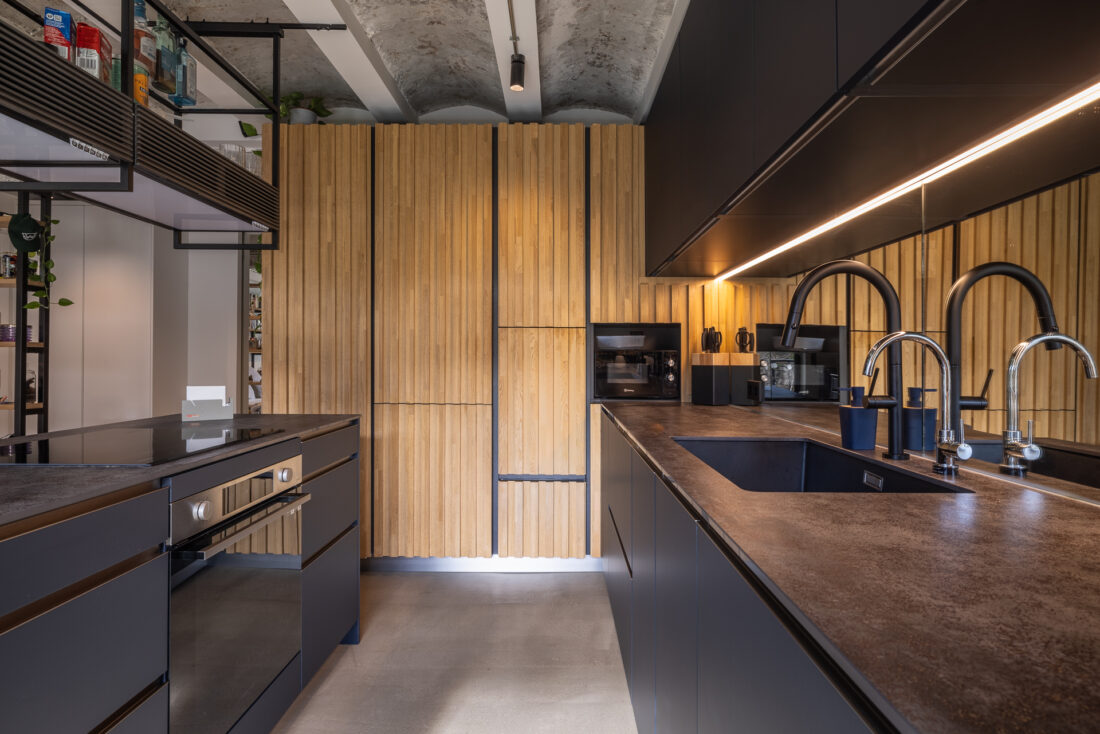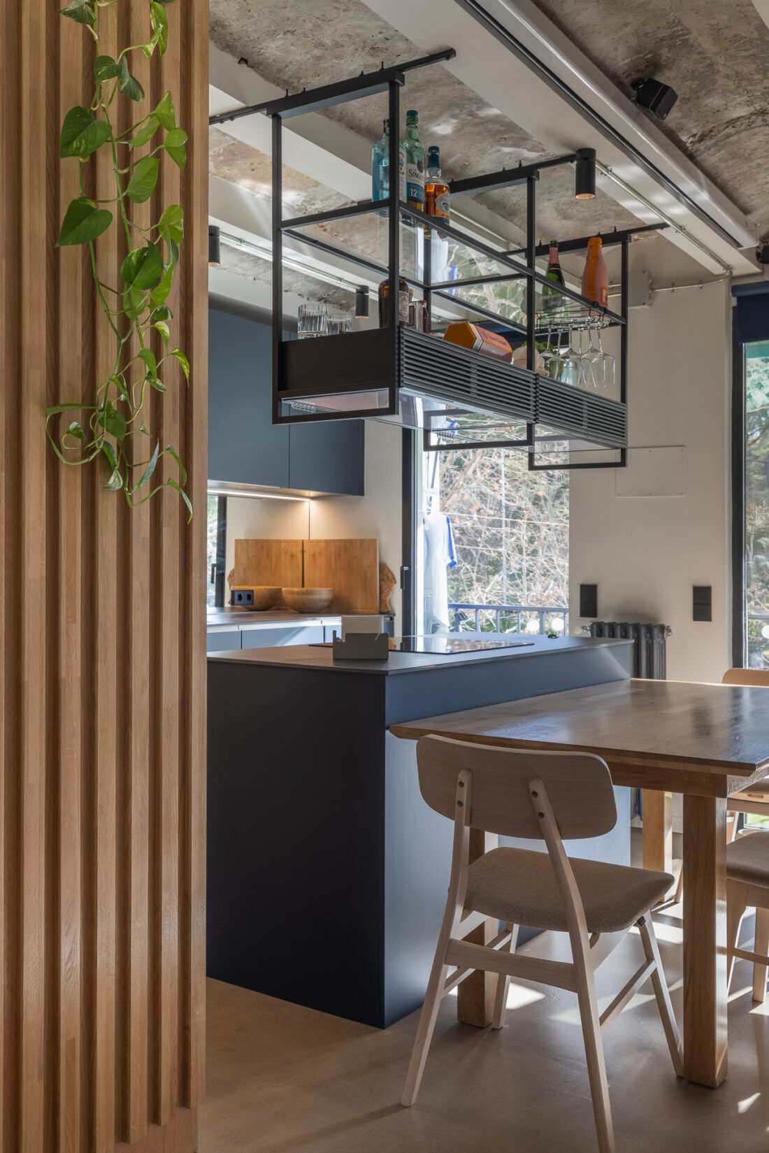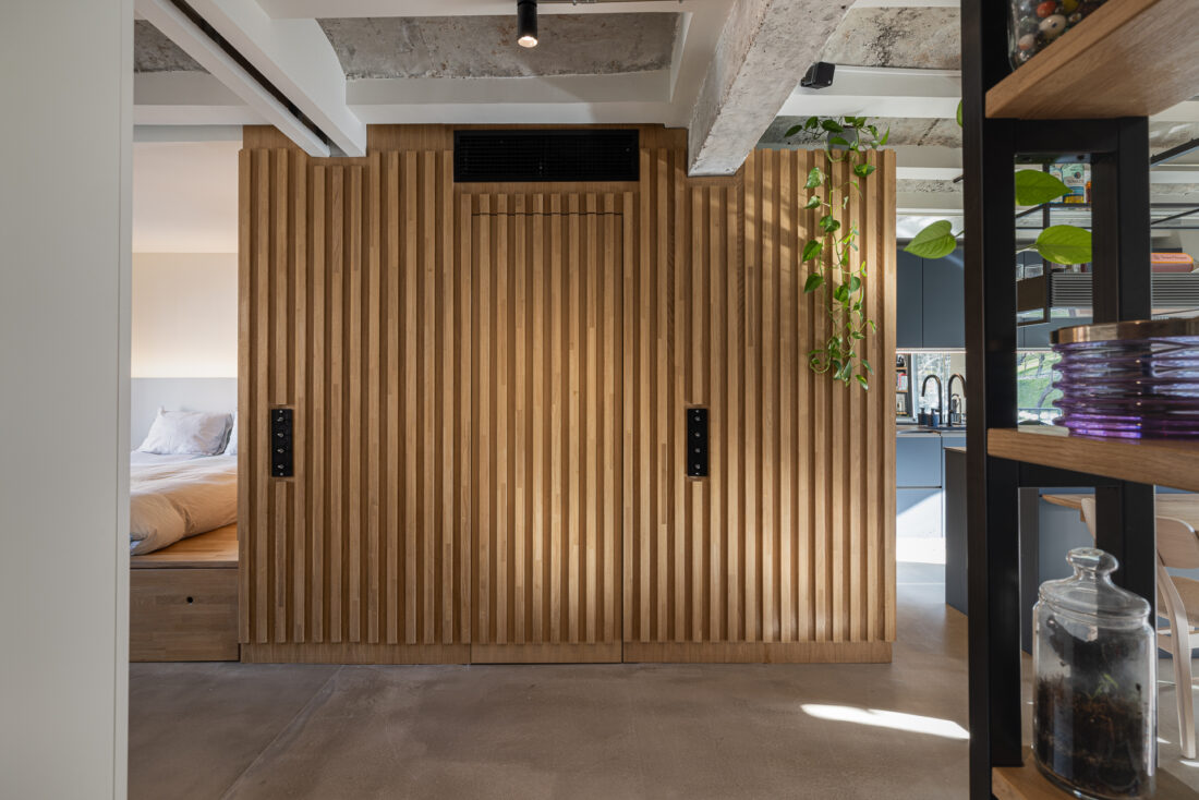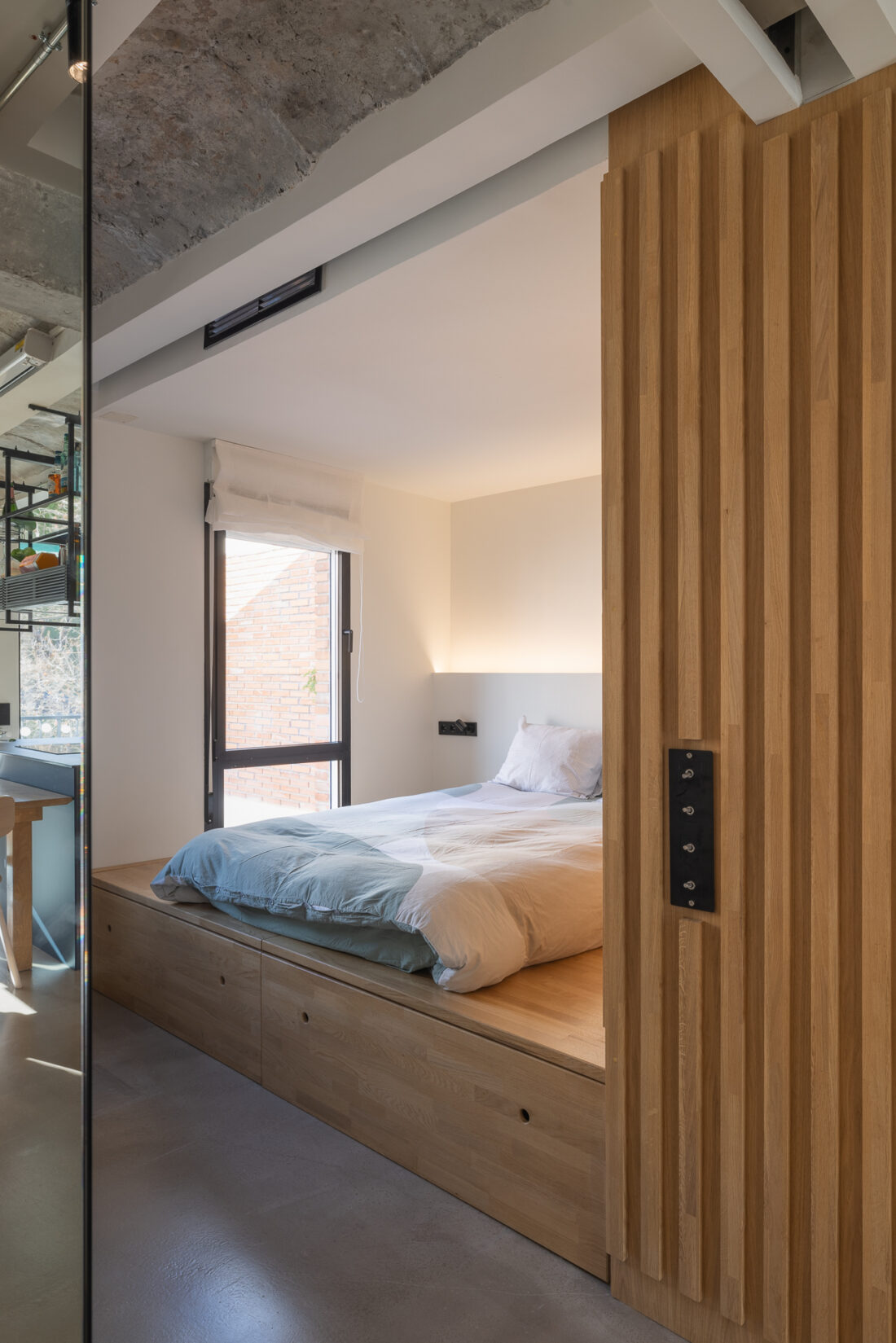 Limpiar de continente y llenar con contenido. Arquitectura en bruto que genera un espacio diáfano que las piezas de mobiliario consiguen organizar.