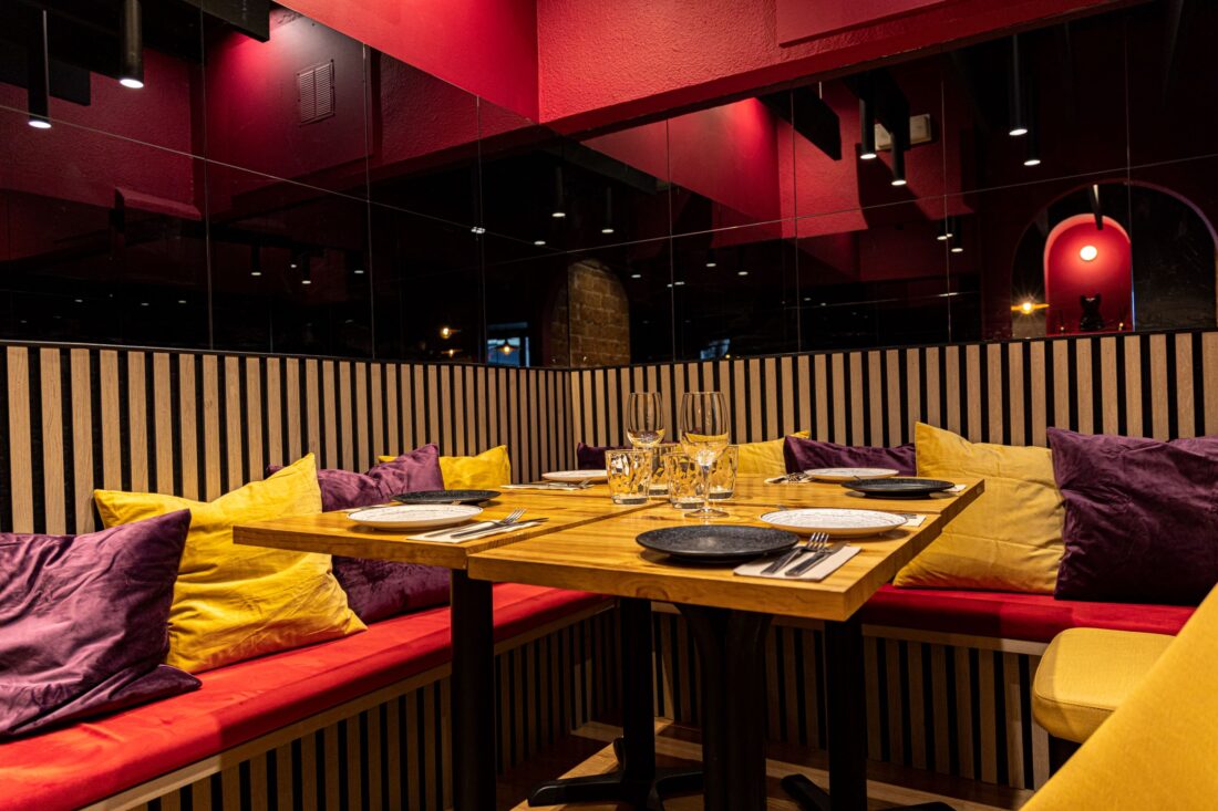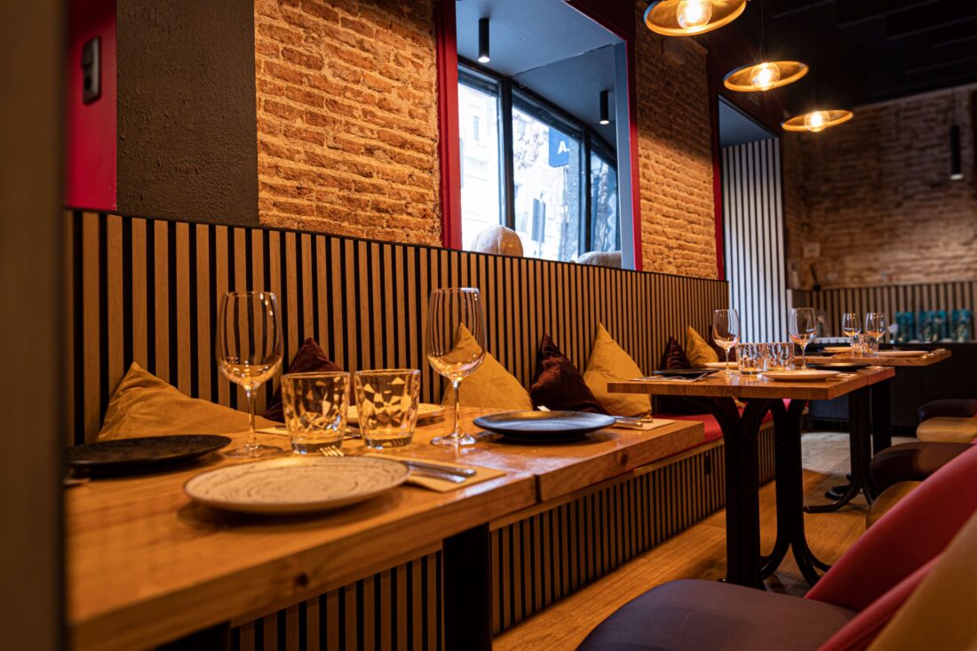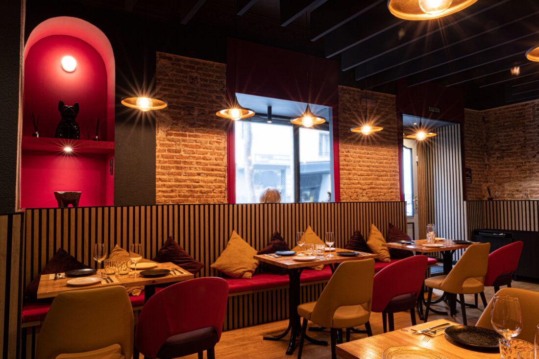 Este proyecto de reforma se centró en mejorar la acústica del restaurante El Santiamén, ubicado en el vibrante barrio de Chamberí. El principal desafío fue optimizar el sonido dentro del espacio, lo que logramos mediante la instalación de paneles acústicos en las paredes y el techo, mejorando significativamente la calidad sonora. Para enriquecer la atmósfera, incorporamos una paleta de colores brillantes que contrastan con los materiales originales de ladrillo y madera del local, creando un ambiente cálido y acogedor. Esta combinación de diseño y funcionalidad ofrece una experiencia sensorial completa, que acompaña perfectamente la deliciosa propuesta gastronómica del restaurante.