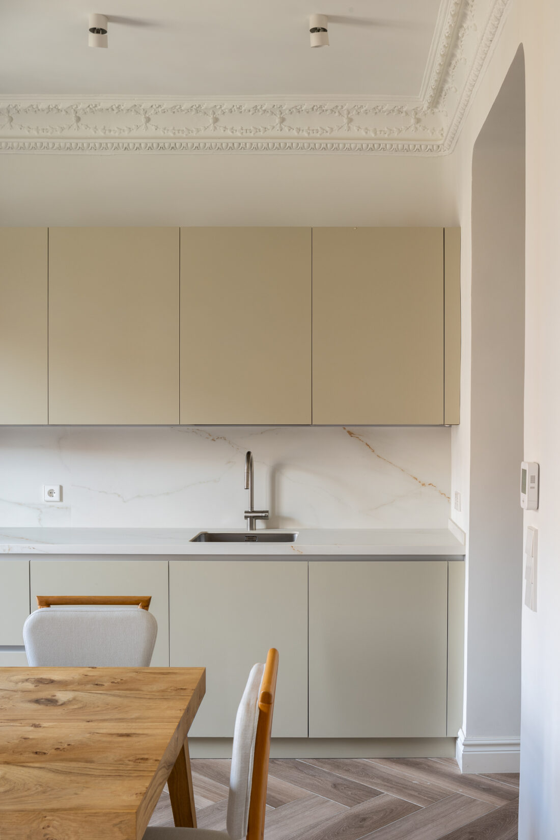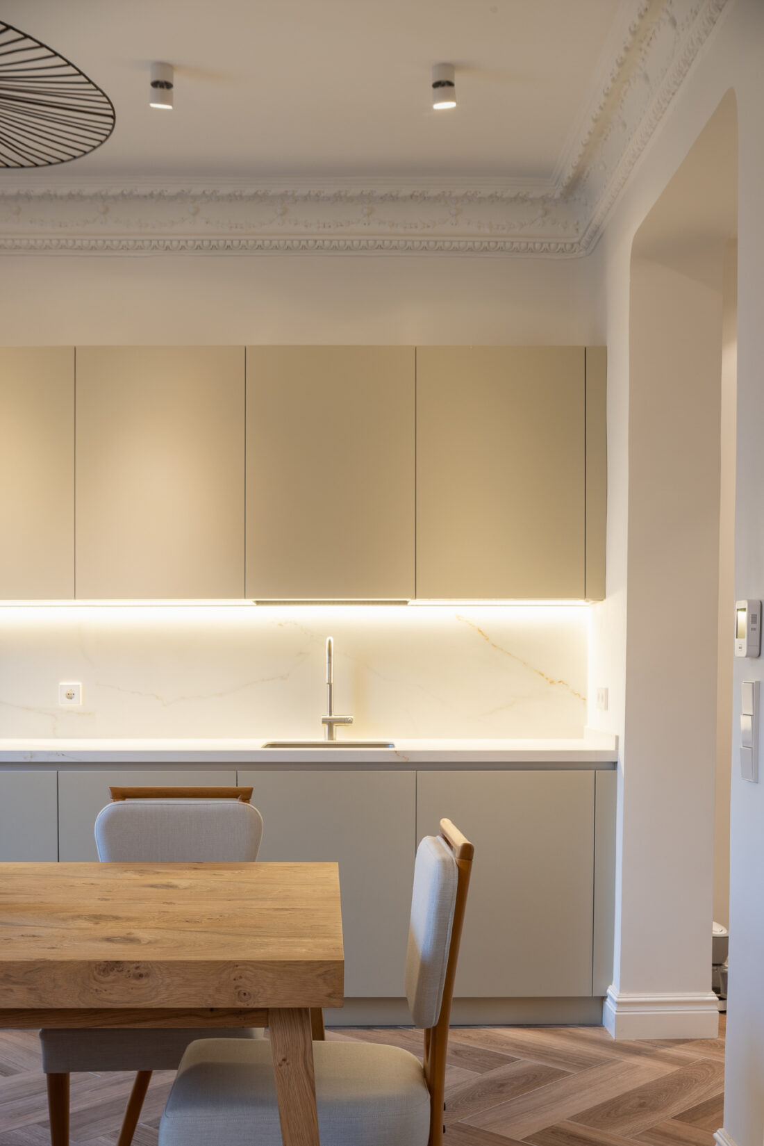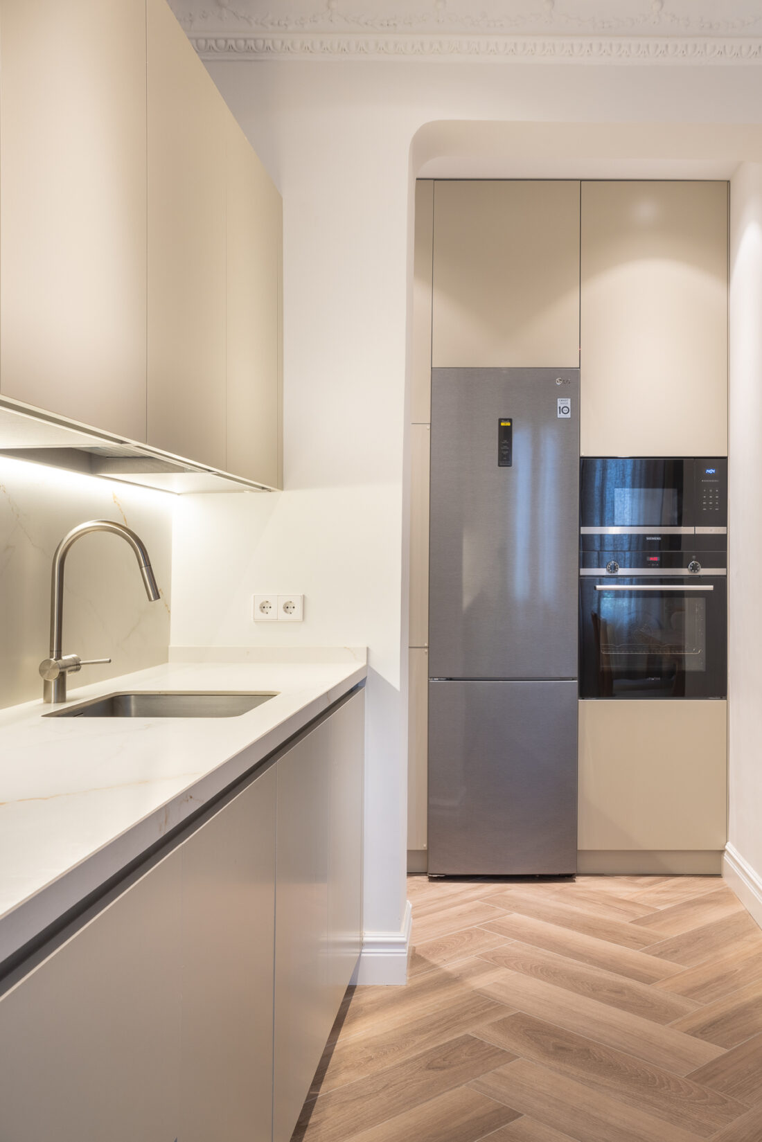 Reforma de vivienda en un edificio del siglo XIX en el que encontrábamos la problemática de intervenir en una vivienda de gran profundidad en la que solo encontrábamos instalaciones en un extremo. Se plantea una recolocación de usos a unos estándares mas actuales.